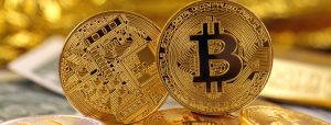 Physical version of Bitcoin (new virtual money) and banknotes of